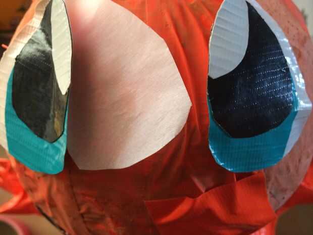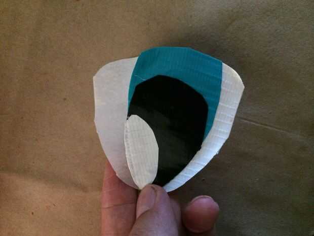 Charmander necesita un rostro usé cinta adhesiva a lo uno. Cuando los datos de las piezas de la capa sobre los ojos, usé papel de pergamino. Me corte un pedazo de cinta adhesiva y ponerlo en el papel de pergamino. Luego corté la forma que necesitaba en la cinta del conducto. Cuando las formas se hacen, sólo tire de la parte de atrás de los cuadernos de pergamino y fije los colores entre sí.