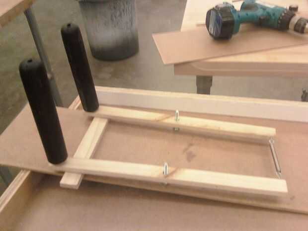 enganchar el resorte de extensión a la Junta y taladre dos orificios amplia en medio de las palancas y attatch las palancas a la Junta