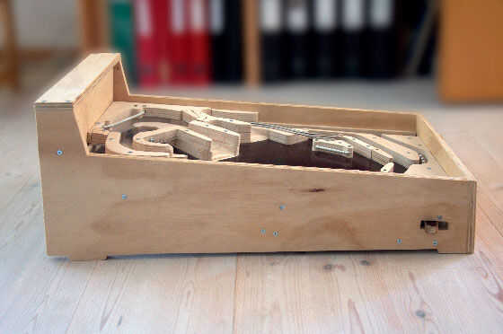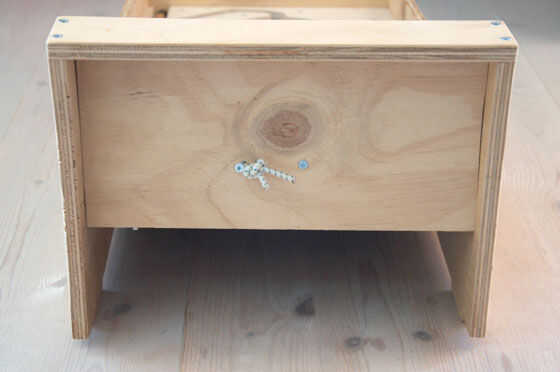 Corte la tabla base y las piezas laterales de madera contrachapada de 12 m m y montar la caja y la mesa. (Nota ya que solo tengo el proyecto terminado, no puedo muestro la caja sin el diseño montado en él todo listo - así que tienes que imaginar, que no están allí todavía...)