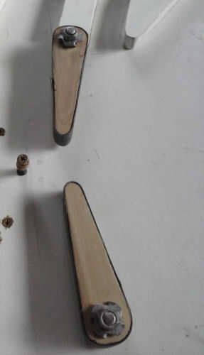 2 - aletas (plantilla de arriba). Hechas de bloques de madera pequeño unos 30 mm de profundidad y 100mm largo por la aleta (yo usé pino Oregón)