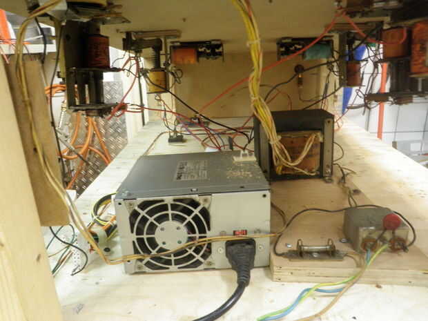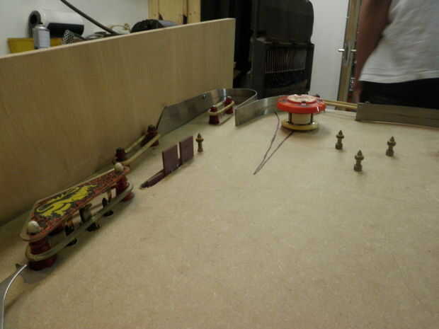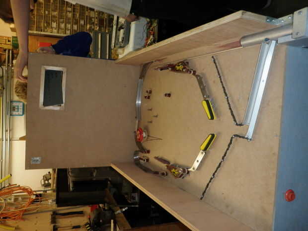 KVG máquina de pinball que hice a principios de 2012.  Una expansión del juego Arcade electrónica KVG. 4 caminos, una red.URL: http://www.youtube.com/watch?v=0gau4tKaMLkPaso 1: Conectar la máquina a la mesa La primera foto es de la mitad de las patas