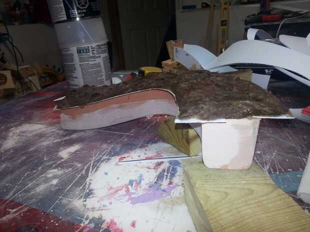 Aplique un poco de Bondo en la parte inferior de las tiras. Use su dedo para que sea bien redondeado. Las esquinas agudas se agrietarán después. Añadir una capa de Bondo al menos 1/2" de espesor en la parte superior, para fortalecer la delgada tira de plástico para la formación de vacío.