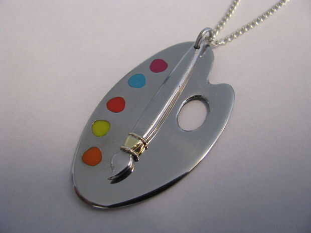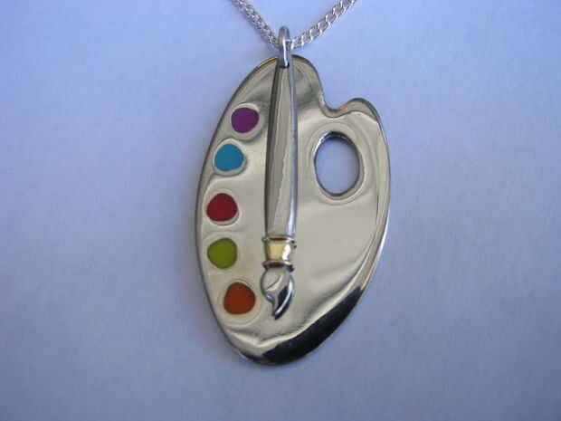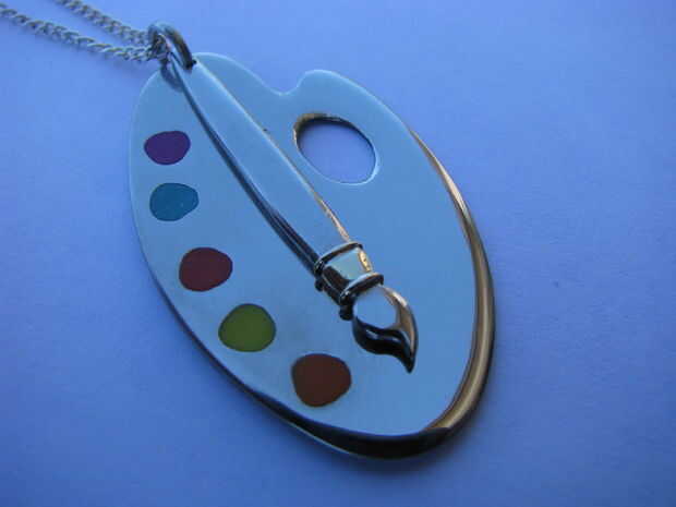 hice este colgante de un amigo artista. Elegí los colores de la paleta basada en una pintura que hizo. Coloqué en el mismo orden, de arriba a abajo, como VI en su pintura. Espero que le gusta.