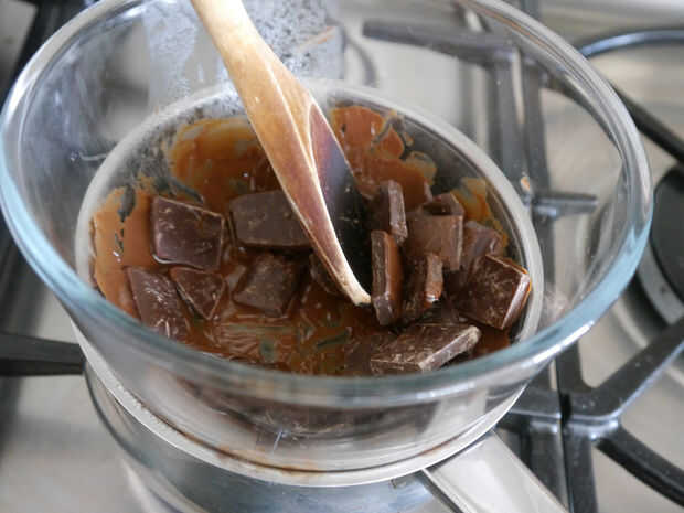 Revuelva el chocolate con una cuchara de madera mientras se está derritiendo para que no se queme.