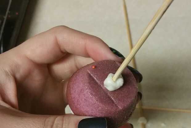 A partir de su color de fondo, cuidadosamente deslícelo en el pincho de la parte superior (para que la pieza de la manija no Haz cubierta de pastel)