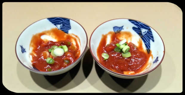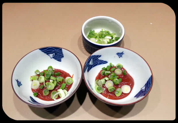 Dividir la pasta de ricotta entre 2 tazones de fuente pequeños. Agregar las cebollas verdes picadas y revolver. Decorar la parte superior con unas cebollas verdes más.