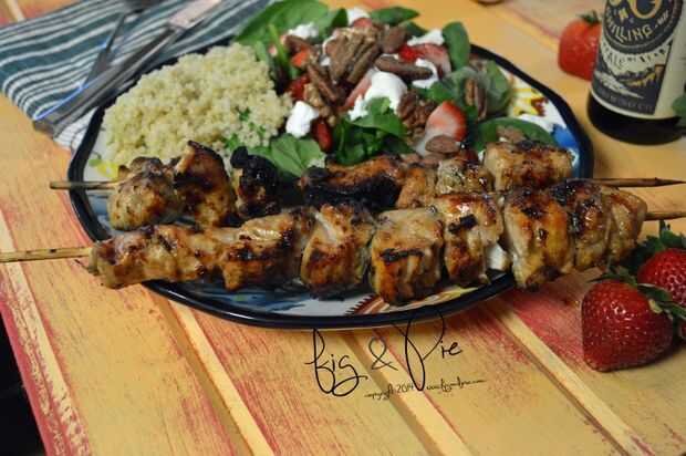 1) pinchos de madera remojo 3-4 en un plato poco profundo llenan de agua mientras se prepara la parrilla, ensalada y quinua.