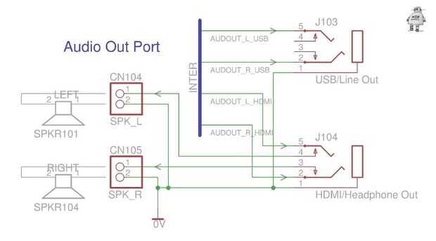 1) audio estéreo de pantalla Pi HDMI de salida, que conduce los altavoces internos auriculares externos OR.