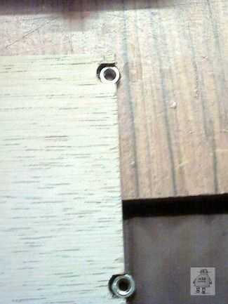 Una hoja de madera contrachapada, corte a la misma anchura que el teclado tiene ranuras de corte en ella para conservar cuatro tuercas de acero. Estos se alinean con los imanes y mantener en su lugar. Cuando, esto cubre la mayor parte de las juntas inferiores, pero deja visible la cabecera GPIO. Las tuercas son pegadas en y con algunos trozos de chapa de madera para mantenerlos en su lugar.