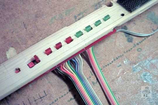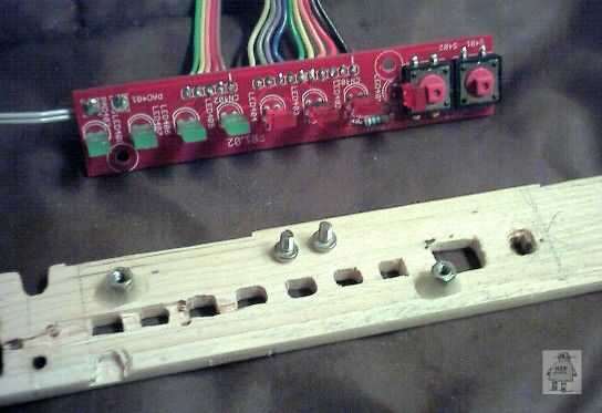 Algunos carpintería sin terminar desde el caso de hacer el proyecto aquí: ahora tengo el PCB de teclado montado que puedo usar como plantilla para marcar y cortar aberturas para los LEDS y switches. Otra vez esto se cubrirá, por lo que los agujeros pueden ser levemente de gran tamaño.