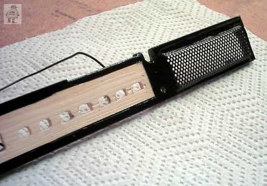 La carpintería fue enmascarado/cebada/pintado/lustre claro revestido para que coincida con el resto de la caja interna, y el gráfico laminado pegado en su lugar.