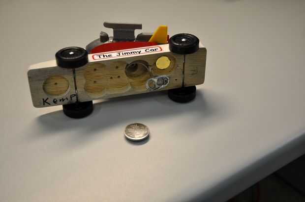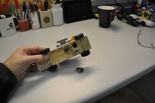 Añadiendo peso a un automóvil Pinewood Derby de forma rápida y barata.