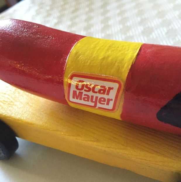 Marca un punto con el logo de producto - al crear el móvil de Weiner, sugerí a mi hijo a usar una etiqueta del producto en sí para que no tenga que pintar uno en. Hemos tenido la mejor suerte para una etiqueta en envases de plástico. No intente quitar una etiqueta engomada si puede evitarlo. Conseguimos el sello de Oscar Meyer de un paquete de Bolonia porque era de plástico. Limpiar el interior del recipiente y cortar la etiqueta mientras todavía unido al plástico. Trate de no obtener la pieza de papel de la etiqueta engomada de mojado. Tuve mi calor hijo encima de la etiqueta de plástico con un secador de pelo por lo que quedaría doblado la curva del Weiner móvil mientras que era fijada con pegamento de elmer.