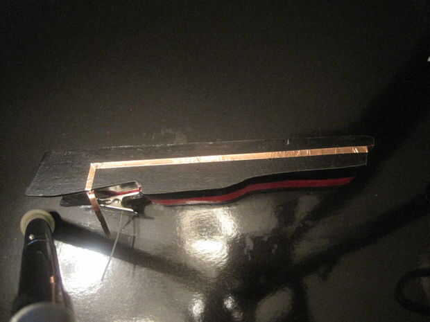 Completar todos los pasos requeridos para preparar y completar su coche. Agregar el Chibitronics circuito debe ser uno de los últimos pasos. Agregando las pegatinas de Chibitronics después de pintar su coche es mejor que las pegatinas tienden a pegarse mejor a una superficie pintada que una madera en bruto o pintado de la superficie. Sin embargo, usted por el bien de su diseño podrán conectar las etiquetas antes de pintar. Las fotos aquí muestran la diferencia entre las dos opciones. En el coche negro, hemos preparado el coche, añadió la cinta de cobre y llevó A pegatinas antes de aplicar la capa final de pintura (cubrimos las pegatinas de LED con pedazos pequeños de cinta de pintor azul). En el coche con la franja roja hemos añadido la cinta de cobre y llevó A pegatinas después de aplicar la capa final de pintura.