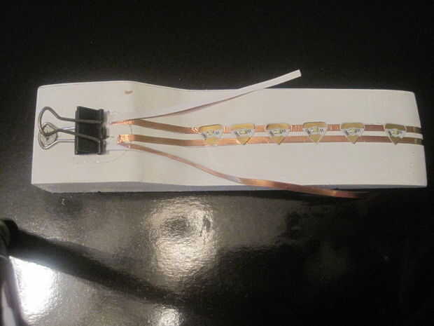 También cabe señalar que usted debería no intentar reparar o unirse a la cinta conductora. Si la cinta se rompe, eliminarlo y empezar de nuevo. Intenta incorporarse a la cinta llevará a conductividad poco fiable y puede significar un circuito no funcione.