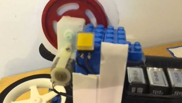 Pegue el interruptor y pulsador en el bazooka en algún lugar. El interruptor se encenderá el juguete y el pulsador controla el dispensador de la bola.