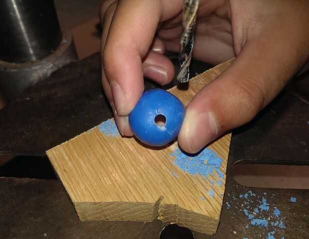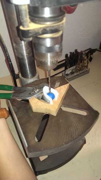 Utilizando medidas de máxima seguridad, perfore un orificio de 1/8 de pulgada a través de su bola de mármol y madera de arcilla.
