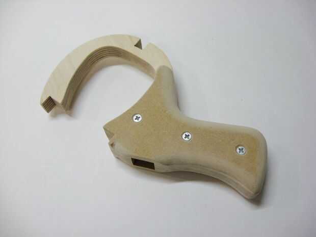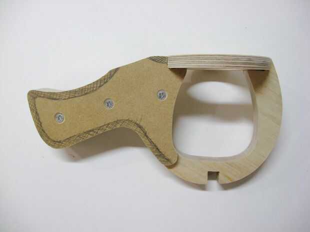Las áreas marcadas en la demostración de la segunda foto donde recomiendo retirar material para hacer un agarre especialmente cómodo.