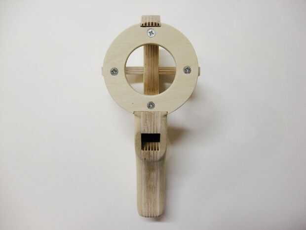Cuando se lija las piezas a su gusto, montarlos juntos y fijar con cuatro tornillos cortos a través de la parte delantera, pieza circular. Las taladre y avellane los orificios a través de las marcas anteriores.
