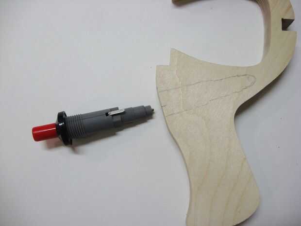 Corte una abertura para los cables justo por encima de la parte trasera del encendedor. Usé un poco de talla pequeña en una dremel para hacer esto, masticar un poco lejos a la vez con la herramienta en ángulo a cada lado de la pieza de mano. Otra opción sería simplemente perfore un orificio de 1/4" a través de la parte trasera de la pieza de mano, coger el extremo posterior de la escotadura del encendedor y área de apoyo en el bulbo.