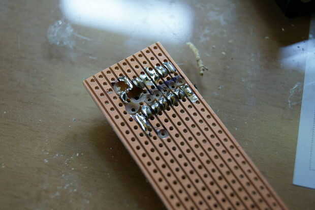 Los empalmes de la soldadura. Usted puede ver por qué los agujeros son demasiado grandes, no hay suficiente espacio para soldar y las articulaciones cercanas a ellos son desordenadas, recorriendo los agujeros y separarse hacia fuera.