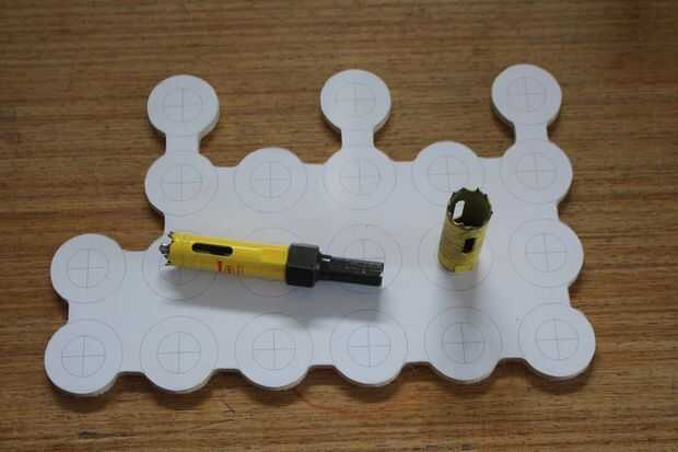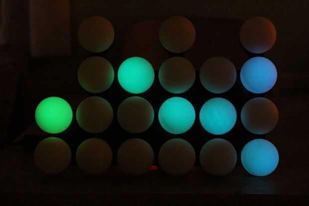 Entonces trabajando desde la parte posterior y con el ping bolas de ping-pong descansando sobre un paño (para que no conseguir rasguñados) perforado cada pelotita de ping pong con la punta de un soldador, luego limpiar el agujero con una Lima.