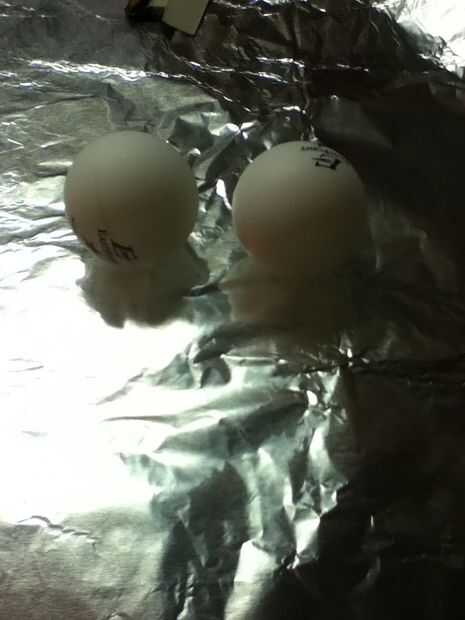 no he probado esto todavía, pero esperando que funcionemateriales necesarios:un montón de partidos2 pelotas de Ping pongharinacintaPaso 1: cortar el agujerocortar un agujero en una pelota de ping-pong y luego proceder a cortar los huelguistas en las