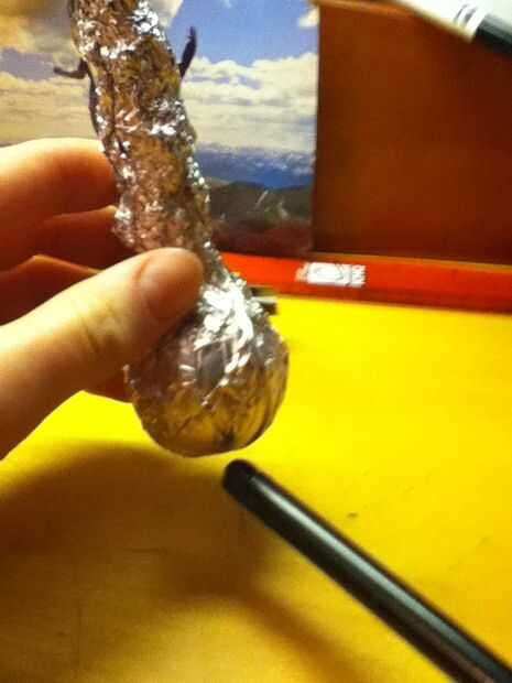 de humo/fuego bomba realmente fácilperdón por no fotosPaso 1: materialesNecesitarás:una pelota de ping-pongun lápizun encendedorhoja de allumanimPaso 2: hacer un agujeroen primer lugar tomar el lápiz y empujar a través de un lado de la pelotita de pi