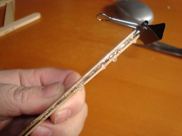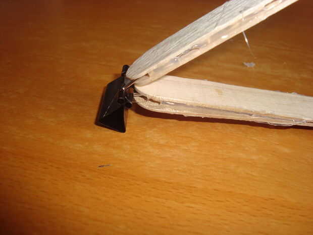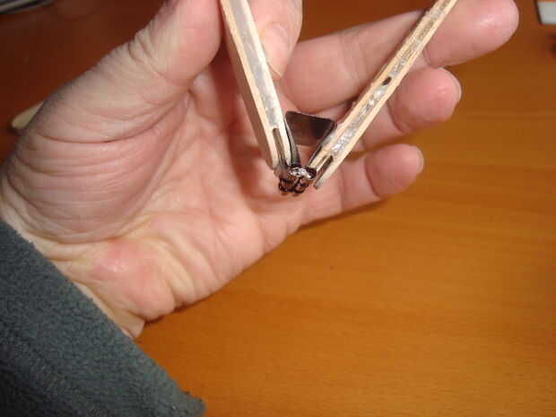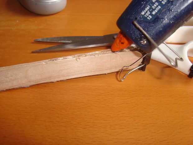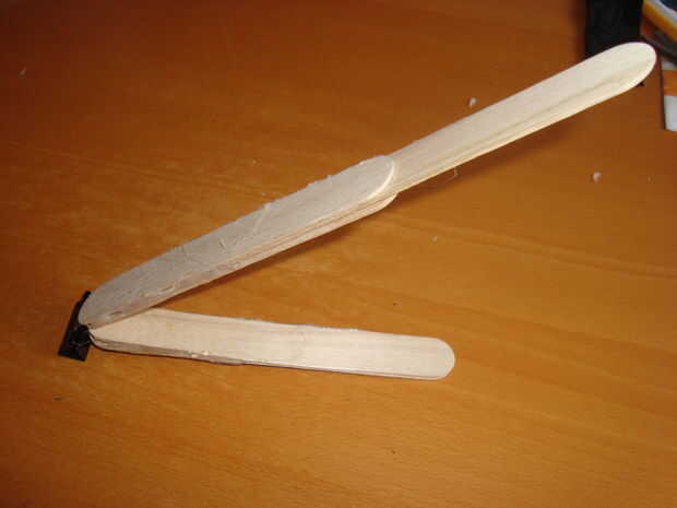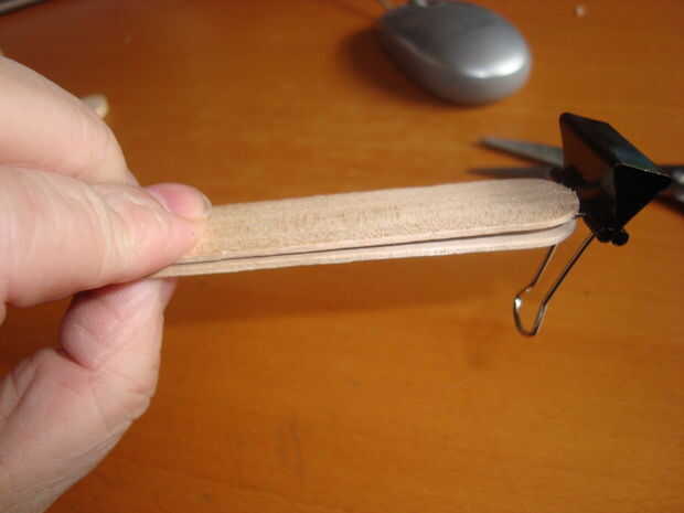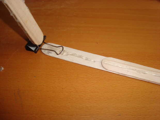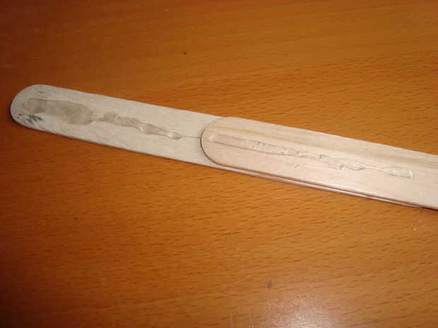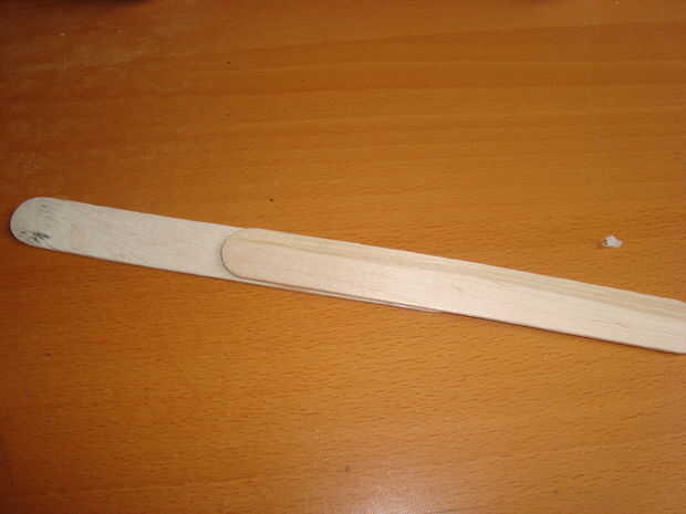 Cuando haciendo el segundo lado pone hacia fuera el primer palillo, pega muy bien y coloque el mango en el tope de palo ahora sobre el palo hasta el mango con cuidado y otra vez con otro pone esto sobre el mango. Mientras que esto es secado podría comenzar mirando lo que tienes que hacer