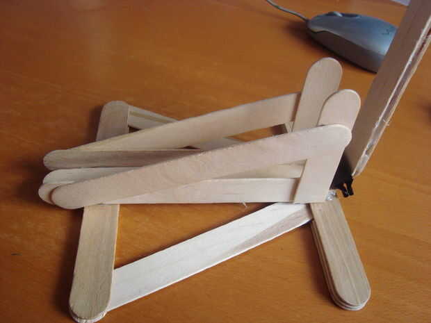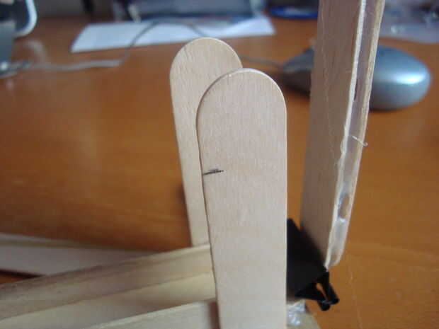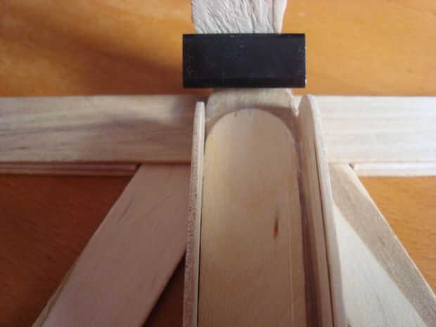 Ahora pega un palo de polo pequeño sobre el frente después de doblar la cuadra en lugar. Hacer que una marca a unos 2cm abajo y pegamento la diagonal apoya a cada lado... buscando buenas