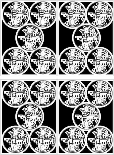 Después de dibujar el circuito una foto positiva fue creada por imprimir el diseño sobre una película transparente. Más imprentas serán capaces de hacer esto, pero también puedes comprar una caja de las transparencias y hacerlo en casa. Se hacen diferentes transparencias para impresoras láser y de inyección de tinta, asegúrese de comprar el tipo apropiado. También, asegúrese de imprimir a escala 1:1; Olvidó esto y grabada la primera junta antes de darse cuenta de que el diseño era demasiado pequeña y necesaria para empezar de nuevo.