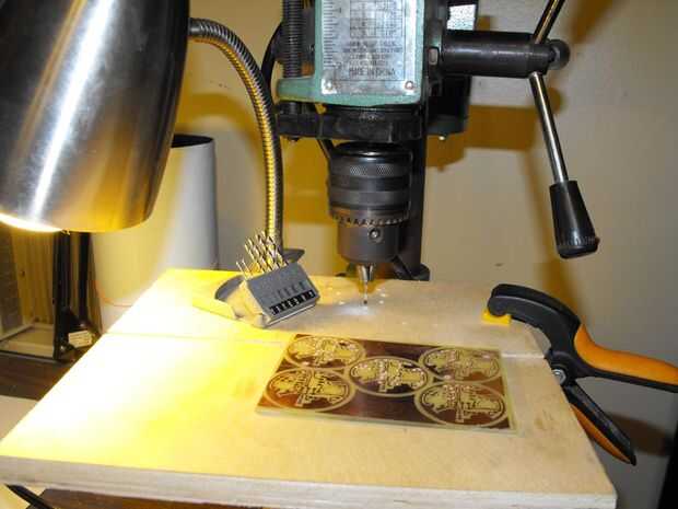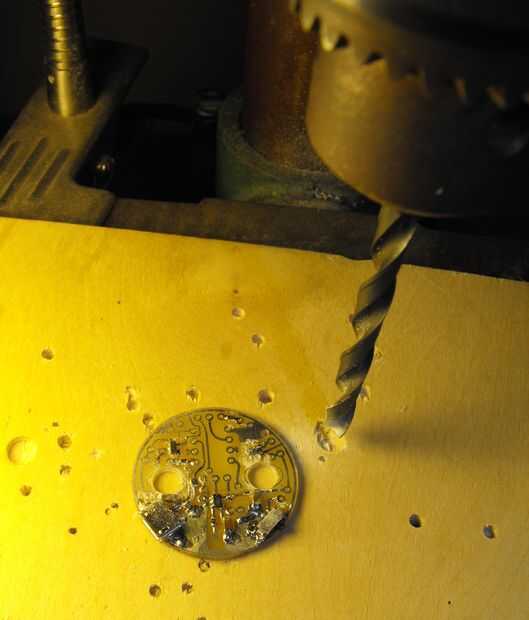 Estoy seguro que hay un estándar en lo que deberían ser agujeros de tamaño PCB, pero no saberlo solo perforé los con la broca más pequeña que tenía en mano.