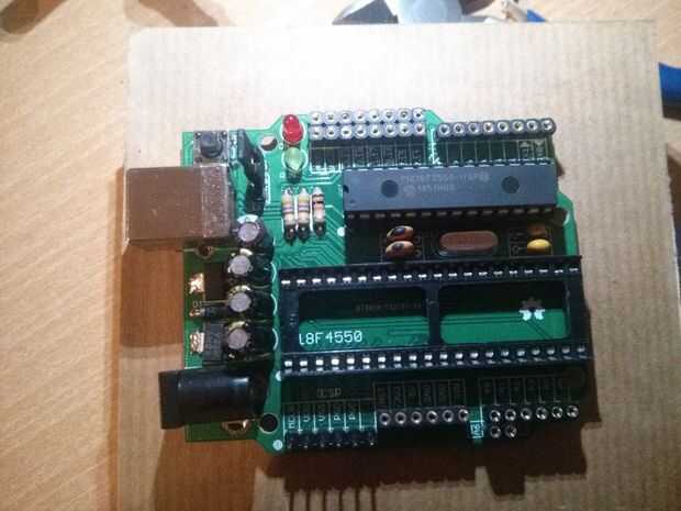 Importante: es necesario usar un programador como el pickit2 (pickit3 o compatibles) para la primera carga; hay unos pines son los se usaran para programar el micro, está fácil de ver. Yo estoy usando un 18f4550 y quedaría como en la foto, también hay una foto con PIC 18f2550 como referencia.