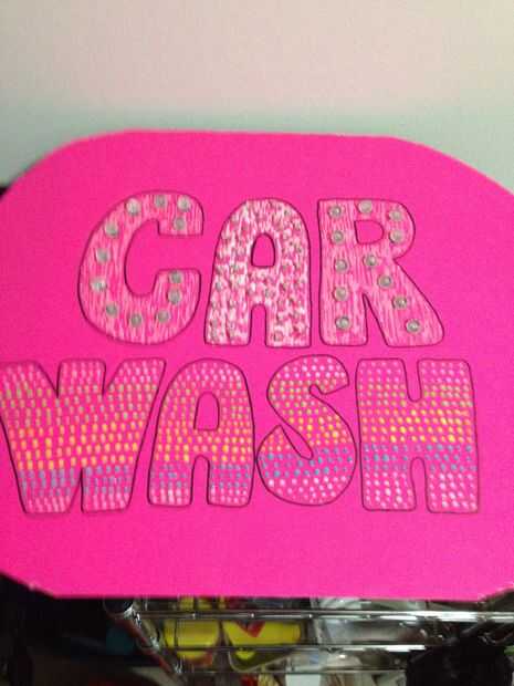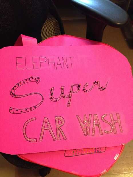 Utilizando un lápiz, diseño el diseño de la muestra. En el señal real, el frente dice "car wash" y la parte de atrás dice "elefante super car wash"