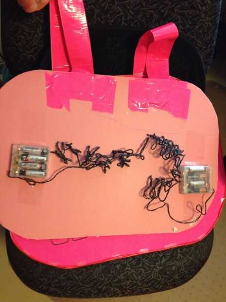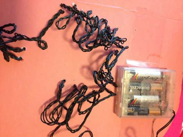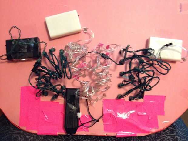 Asoman las luces a través de los agujeros y asegúrelo al interior de la muestra con cinta de embalaje