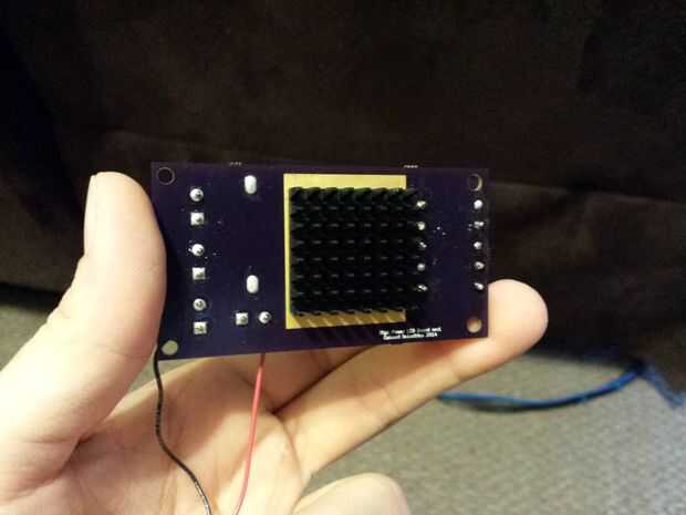 Debido a la fuente de alimentación descubrí que tenía a 3V a 700mA por LED, así que es seguro decir que había una buena cantidad de energía a disipar (3V * 0.7A = 2.1W). He añadido algunas resistencias de 5W grande, un disipador a la placa de circuito y de yapa utiliza un par de fans que tuve poniendo alrededor a circular algo de aire en el tablero.