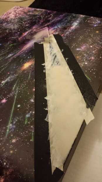 Ahora que tienes el bastidor construido puede conectar la caja de luz con algunos soportes. El siguiente paso es probar su trayectoria de la luz y hacer los ajustes menores, puede que necesite. Una vez que tienes identificado desea utilizar alguna cinta adhesiva para delinear el espectro en su impresión. A continuación puede cepillo una capa delgada de la Weldbond hacia el área de la imagen que ocupa el espectro y espolvorear algo de arena blanca sobre ella. Esto le ayudará a hacer el espectro más visible como casi desaparece sobre un fondo negro.