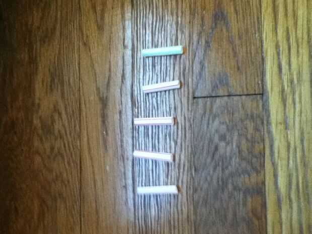 a continuación, vas a querer cortar la paja de cinco piezas de aproximadamente una pulgada. (Bono de puntos si usted anota una pajita verde: P)