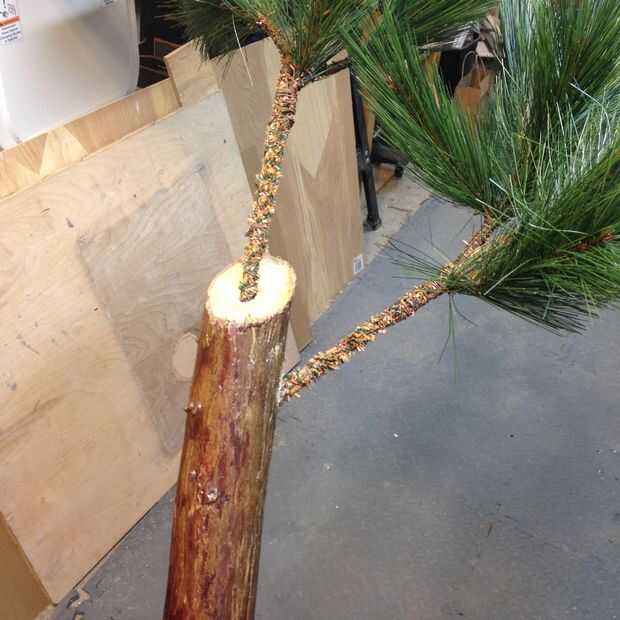 Perforaciones hacia abajo-que se inclina en su tronco. Sumergir una rama artificial de cemento de goma (para adherir y sellar el agujero) e inserte. Curva, transmitido la rama en una forma estéticamente agradable.