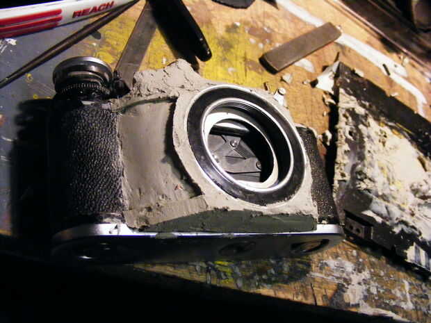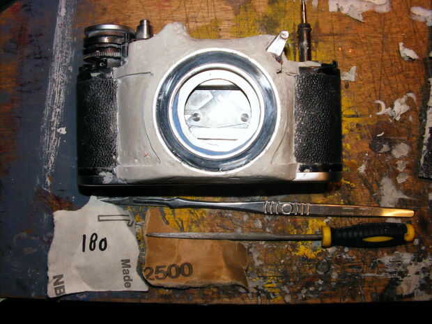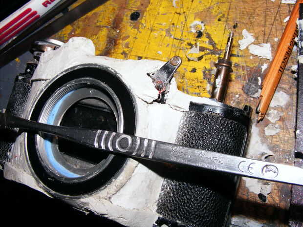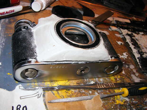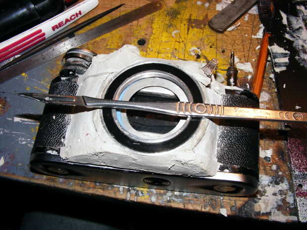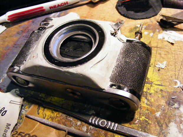 una capa de cinta aislante trabajos para llenar cerca de una parte sin pegarse a él, detrás de la película de cromo alcanza alrededor de la parte delantera de la camera.it debe ser desmontable para cambiar la película.