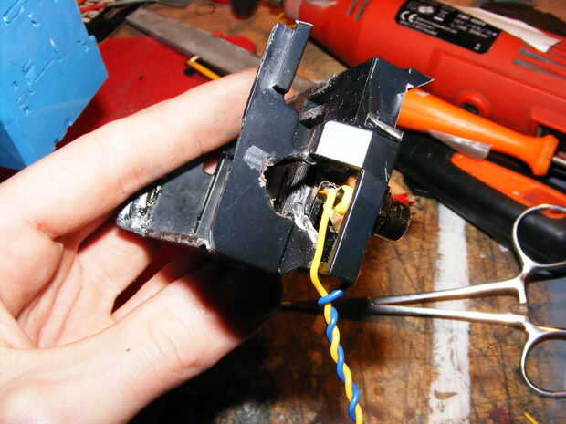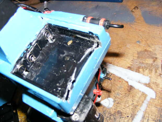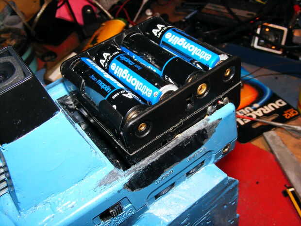 los batterys escurridos rápidamente a la tv y visor, utiliza el espacio original de la batería ampliada y extendida para contener 8aa, dos lotes de 4 en paralelo. También he añadido un conector phono, por lo que puede hacer salir un vídeo o grabación (imágenes fijas) una entrada de alimentación.