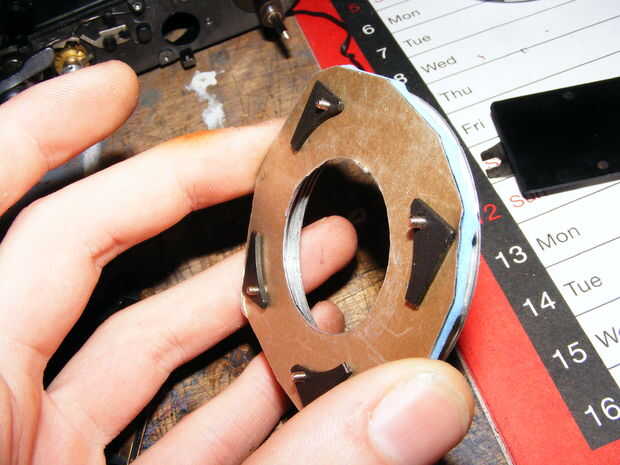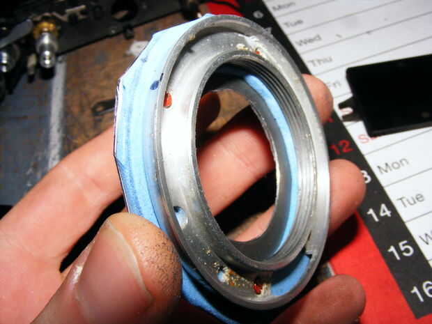 el anillo es aluminio fino cortado con un taladro de paso. espaciados con espuma y pernos y tuerca como cosas mantienen unida.