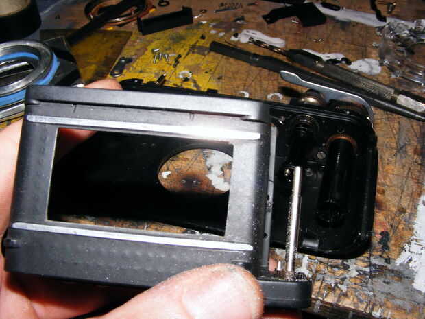 para corregir esto la lente tiene que mover un poco hacia un lado. Esto implicará cortar la parte delantera de la cámara para que el orificio para la lente se alinea con el marco.