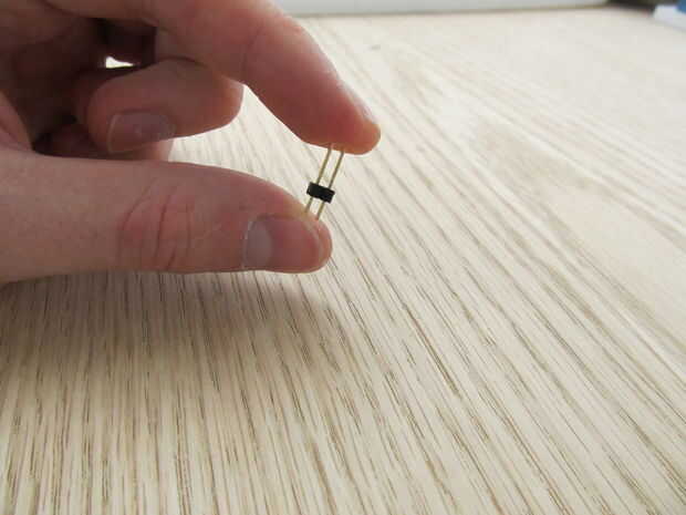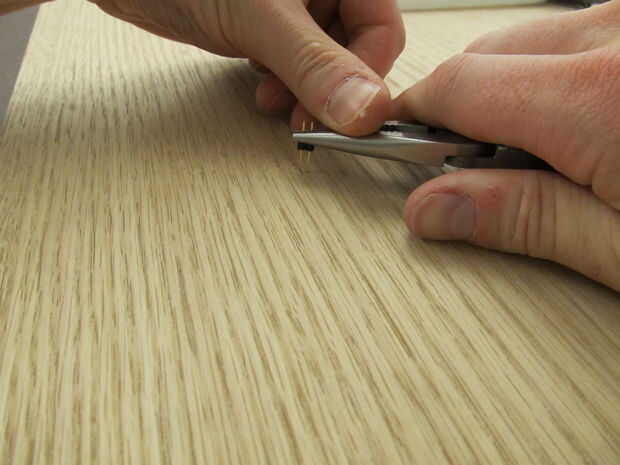 Vas a querer una superficie dura y plana como una mesa o un tablero de clip. Alicate para sostener sus pines por el lado más corto (suponiendo que desea hacerlos más largos). Coloque los pernos más largos contra la mesa y tratar de mantenerlas perpendiculares. Relajar su puño en las pinzas, por lo que le permite ir de los pines, pero no se abre lo suficiente como para que salga la pieza de plástico. Lo que quieres hacer es empujar hacia abajo en la pieza de plástico por lo que mueve a lo largo de los pernos.