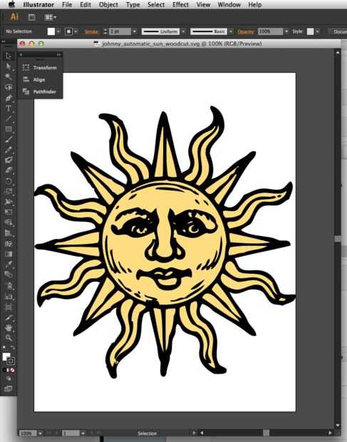 Cortadores CNC suelen hacen uso de gráficos vectoriales. Quería un sunburst, pero no quiero llamar a uno desde cero. Yo no soy bueno en el diseño desde cero, pero bastante bueno en modificación de obra existente. OpenClipArt.org es un gran recurso para obtener gráficos de vector libre de derechos de autor. Encontré un sunburst allí que me gustaba y lo descargaron. No era exactamente lo que quería, pero fue un gran comienzo.
