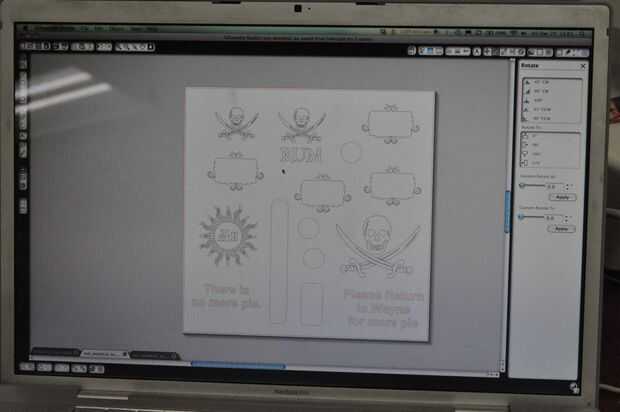 Organizar la obra de arte en la zona de corte. Podría tener sentido hacer una serie de pegatinas o plantillas de una vez a hacer el mejor uso de los materiales.