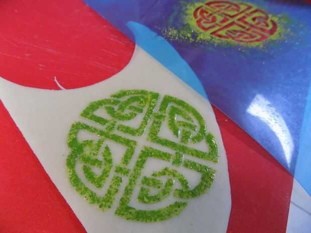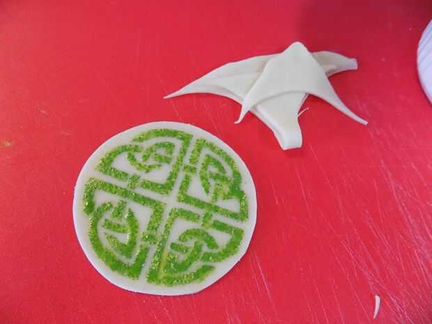 Coloque la plantilla sobre la masa y utilizar un rodillo para presionar muy suavemente la plantilla sobre la masa.