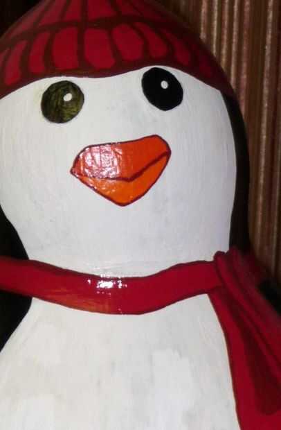 La calabaza necesita toques? Generalmente, pinto en sombreros, guantes, gorros, bufandas. Pero puedes hacer accesorios a añadir para un look más 3-d. Hice sombreros para muñecos de nieve por cortar 2 círculos y una tira de fieltro rígido y pegado de juntas. O las orejeras pueden ser cómodas. Dos pompones y un limpiador de pipa pegada en puede hacer un conjunto.  Incluso pude ver añadir palillo los brazos a un muñeco de nieve. Supongo que necesita la herramienta adecuada para perforar la calabaza sin crackearlo, y no tengo una herramienta.