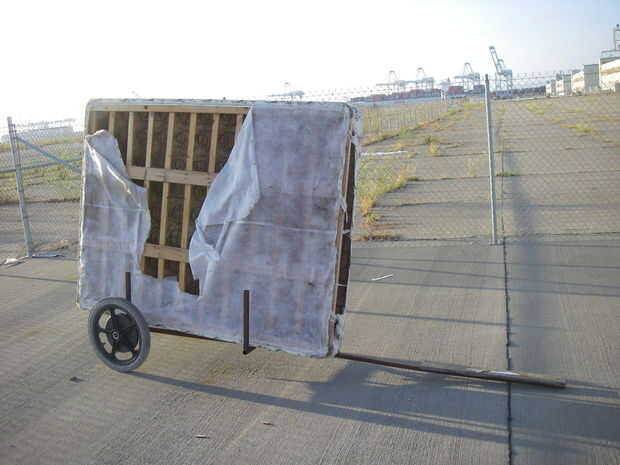 cargué el colchón en el acoplado del barco de Damon para moverlo por la pintura.