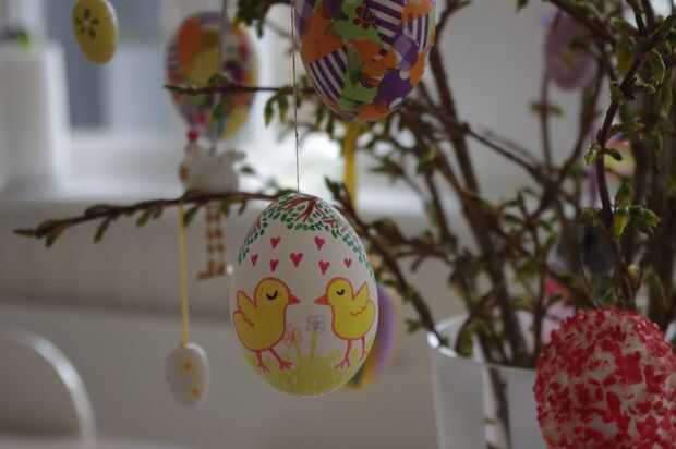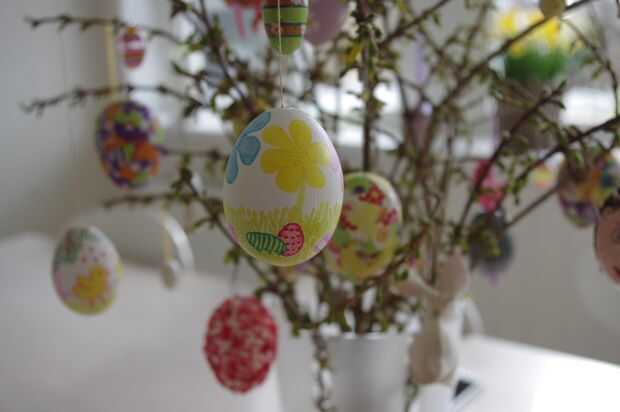 Colgué mi huevo en un montón de ramas cortadas frescas, pero los huevos se vería hermosa colgar en ventanas o acostado plato así. Las ramas florecen en el calor de una casa y dar algunos naturaleza verde antes de la primavera es realmente aquí. En las ramas también colgué algunos de los huevos que había hecho años antes. Estos huevos pueden almacenarse durante muchos años si se mantienen en las mismas cajas que los huevos fueron